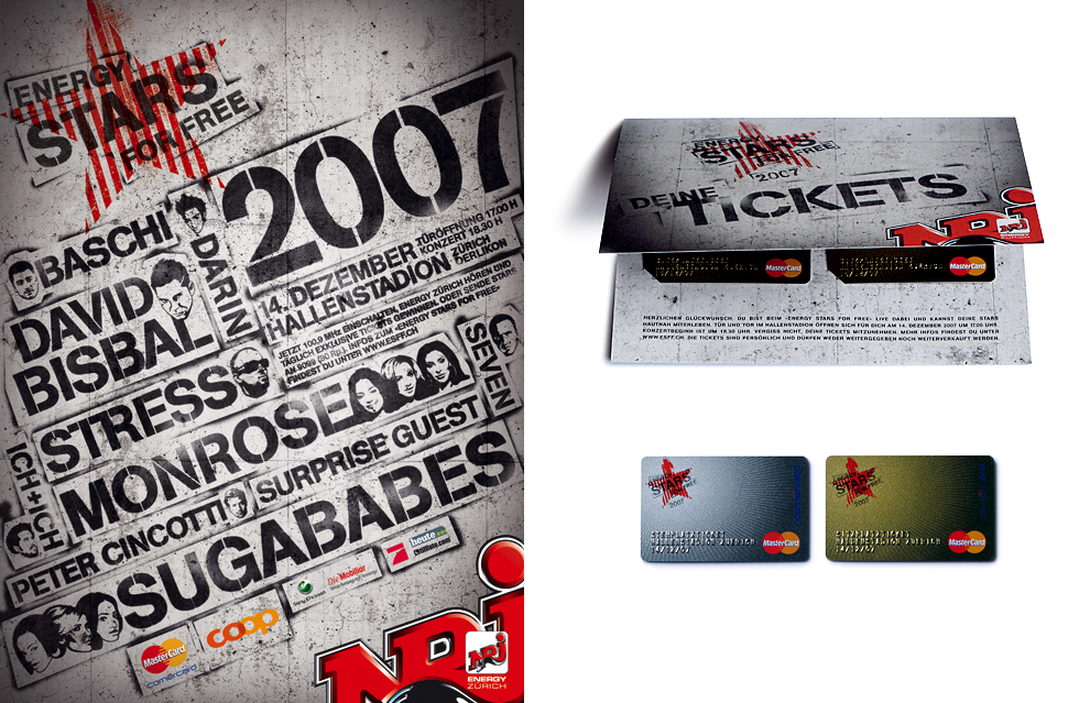 INFORMATIONRadio Energy steht für Musik und Stars. Das Privatradio veranstaltete zum fünften Mal das «Energy Stars for free». Der Konzertabend fand am 14. Dezember 2007 im Hallenstadion Zürich statt. Tickets gibt es nur zu gewinnen.