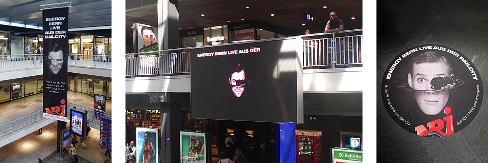 INFORMATIONEnergy Bern sendete acht Tage live aus dem Bahnhof in Bern. Das komplette Sendeprogramm wurde aus der SBB RailCity ausgestrahlt. Das Radiostudio befand sich oberhalb des Treffpunktes.