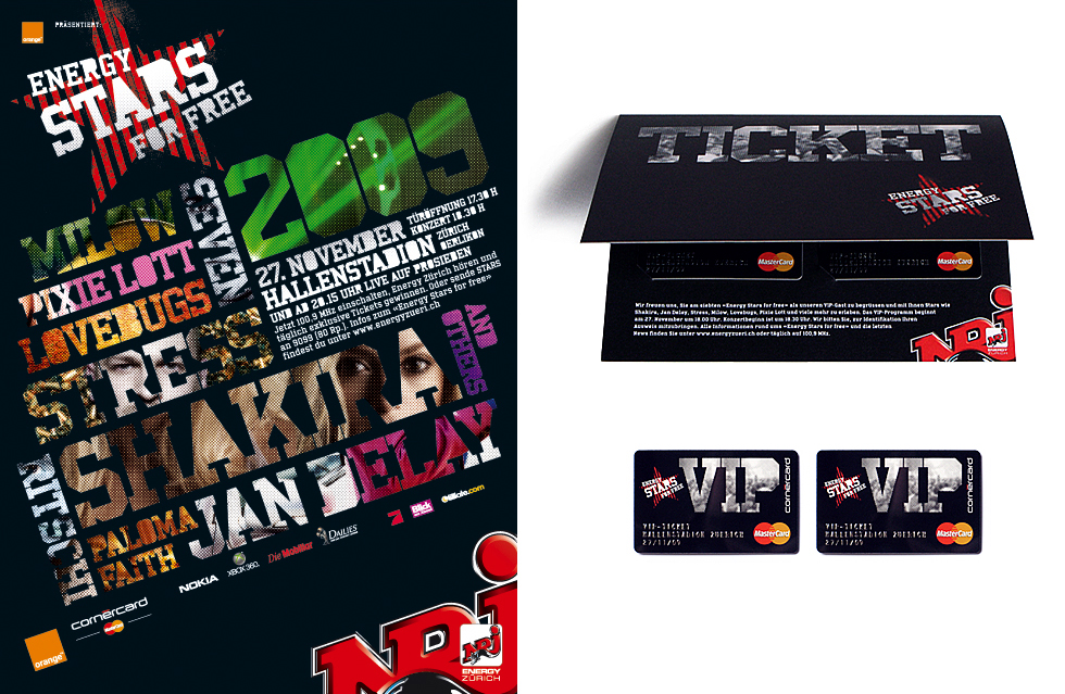 INFORMATIONRadio Energy steht für Musik und Stars. Das Privatradio veranstaltete zum siebten Mal das «Energy Stars for free». Der Konzertabend fand am 27. November 2009 im Hallenstadion Zürich statt.